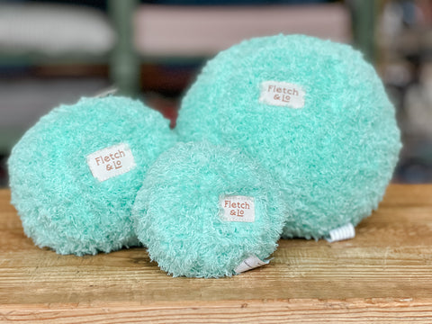 The famous CASSIE BEAR BALL. This will be your puppy’s most favorite toy of all. Your puppy will love this toy, and you will want to have lots of extras on hand. Cassie Bear Balls are a soft, colorful ball with an enticing squeaker.