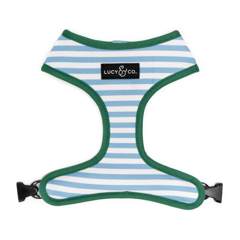 Ready, Set, Sail! The perfect dog harness for adventurous pups and water dogs: our Sailboat Inspired Harness! Crafted with durable, water repellent neoprene, this harness is perfect for pups that like to switch up their style with minimal effort. Featuring a classic blue and white striped design on one side and blue, green and white sailboats on the other. Designed with the same attention to detail and quality as a sailboat, this harness will keep your furry friend secure and comfortable during all of your outdoor escapades. Plus, the adjustable strap ensures a perfect fit for your pup, while the flexible neoprene looks great and moves well too.