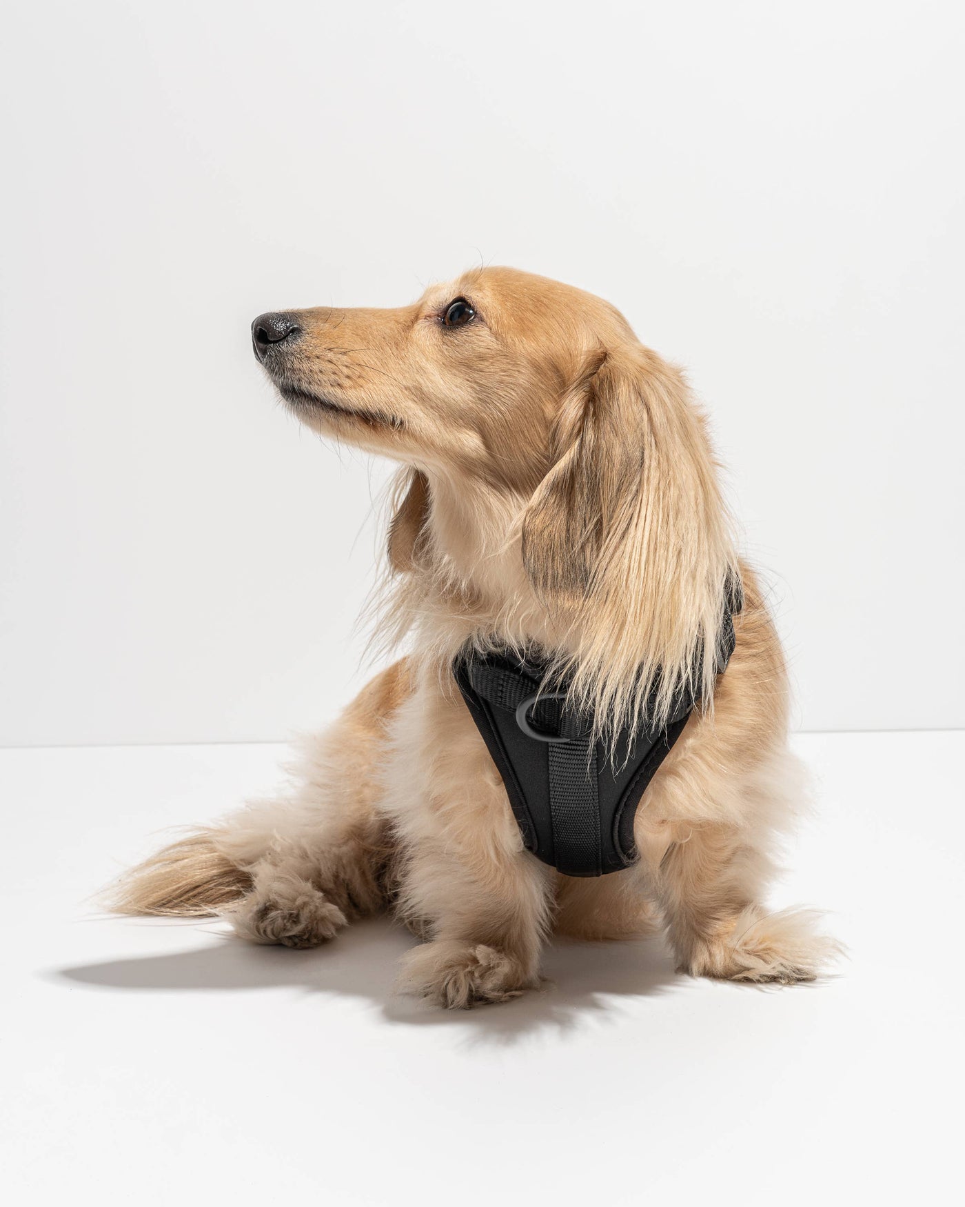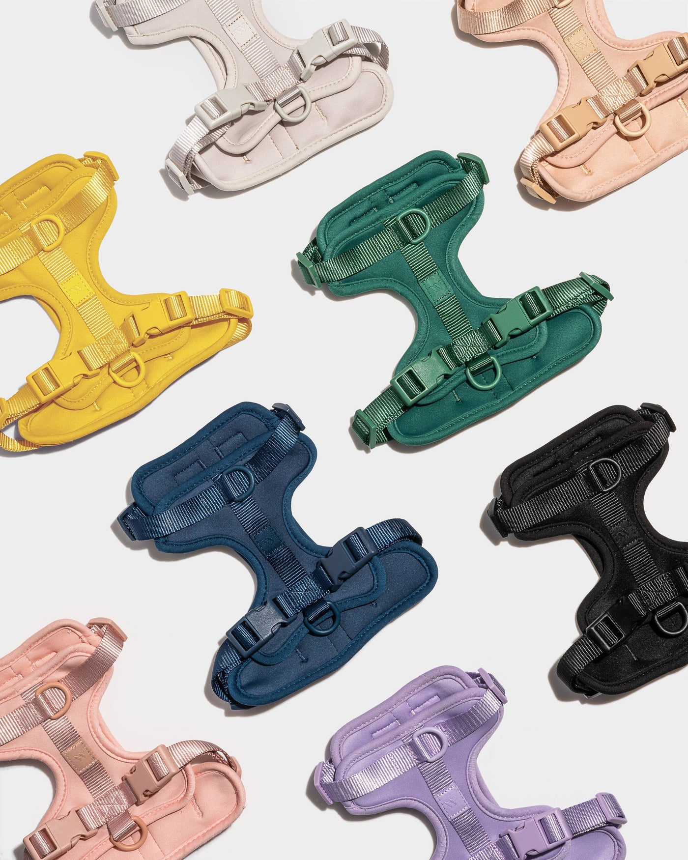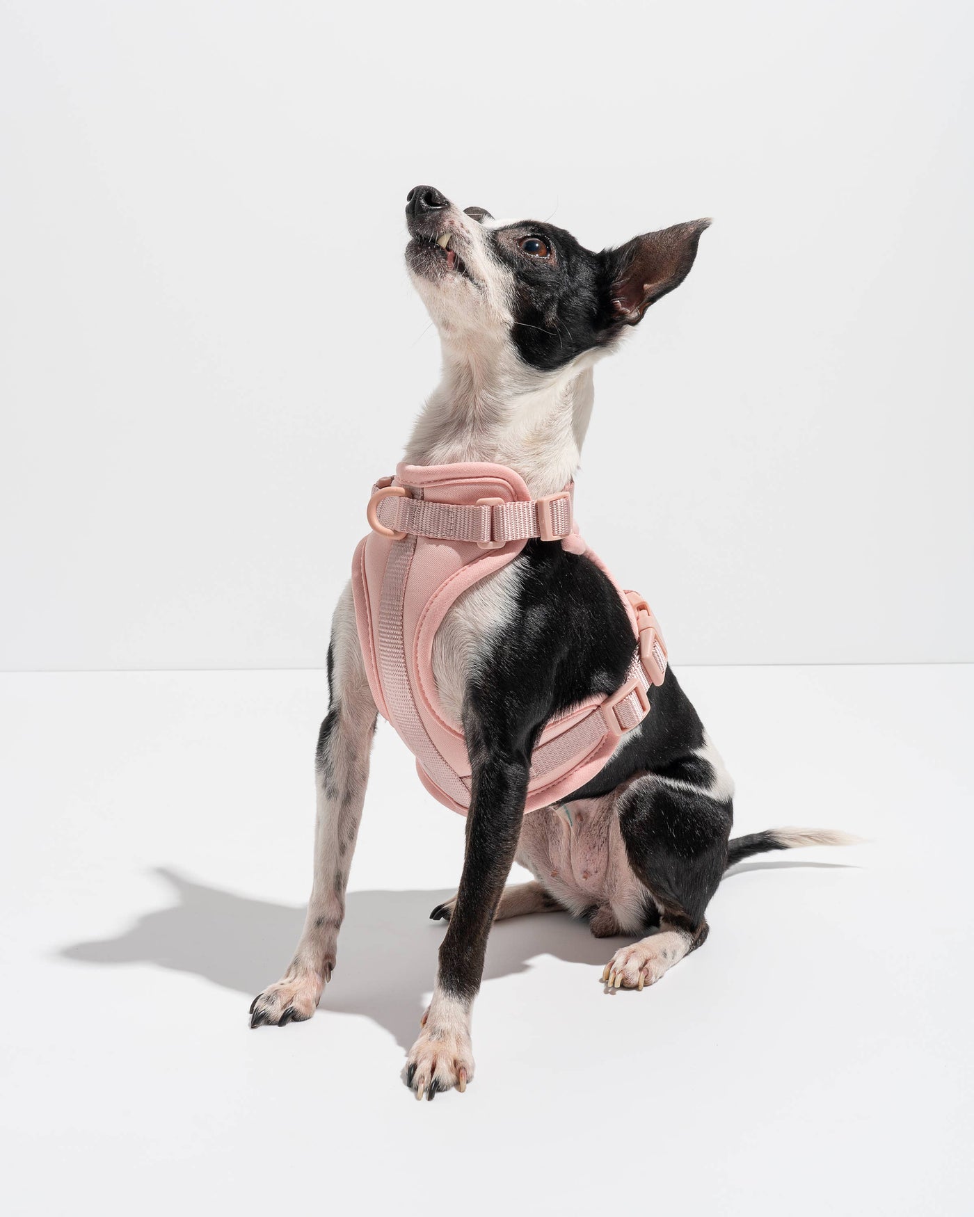 Soft, stretchy, and resilient. This cushioned, lightweight harness has four attachment points to suit different walk styles. Plus, adjustable straps at the neck, chest, and back accommodate different sizes, and make it a breeze for pet parents to slip it on and off.