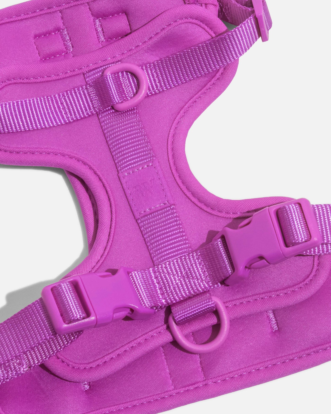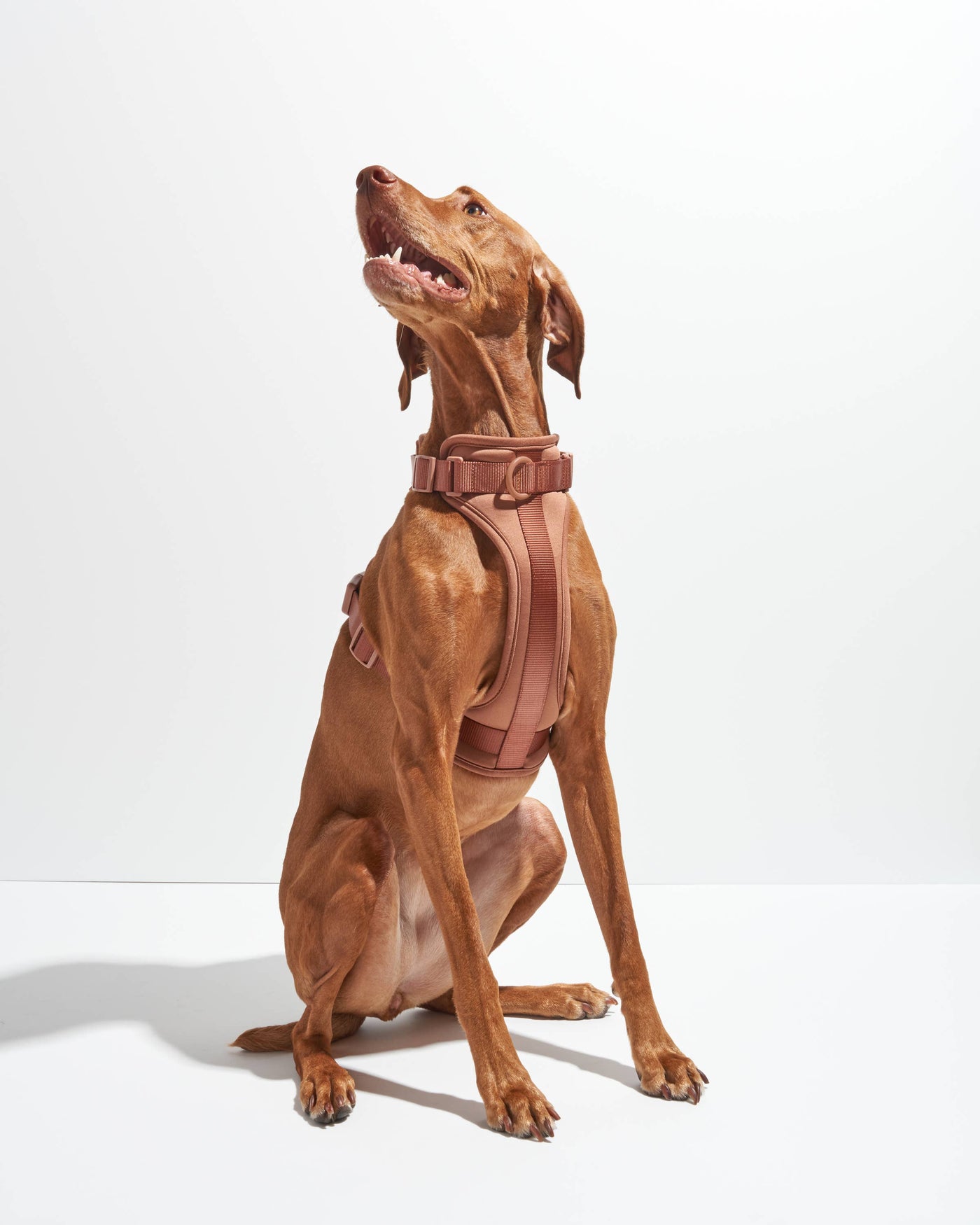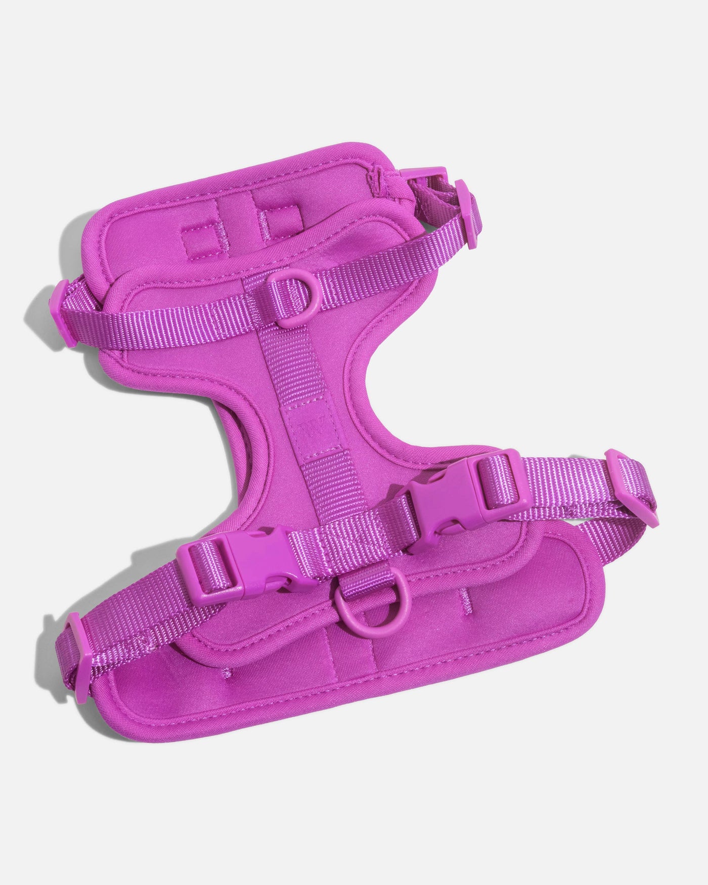 Soft, stretchy, and resilient. This cushioned, lightweight harness has four attachment points to suit different walk styles. Plus, adjustable straps at the neck, chest, and back accommodate different sizes, and make it a breeze for pet parents to slip it on and off.