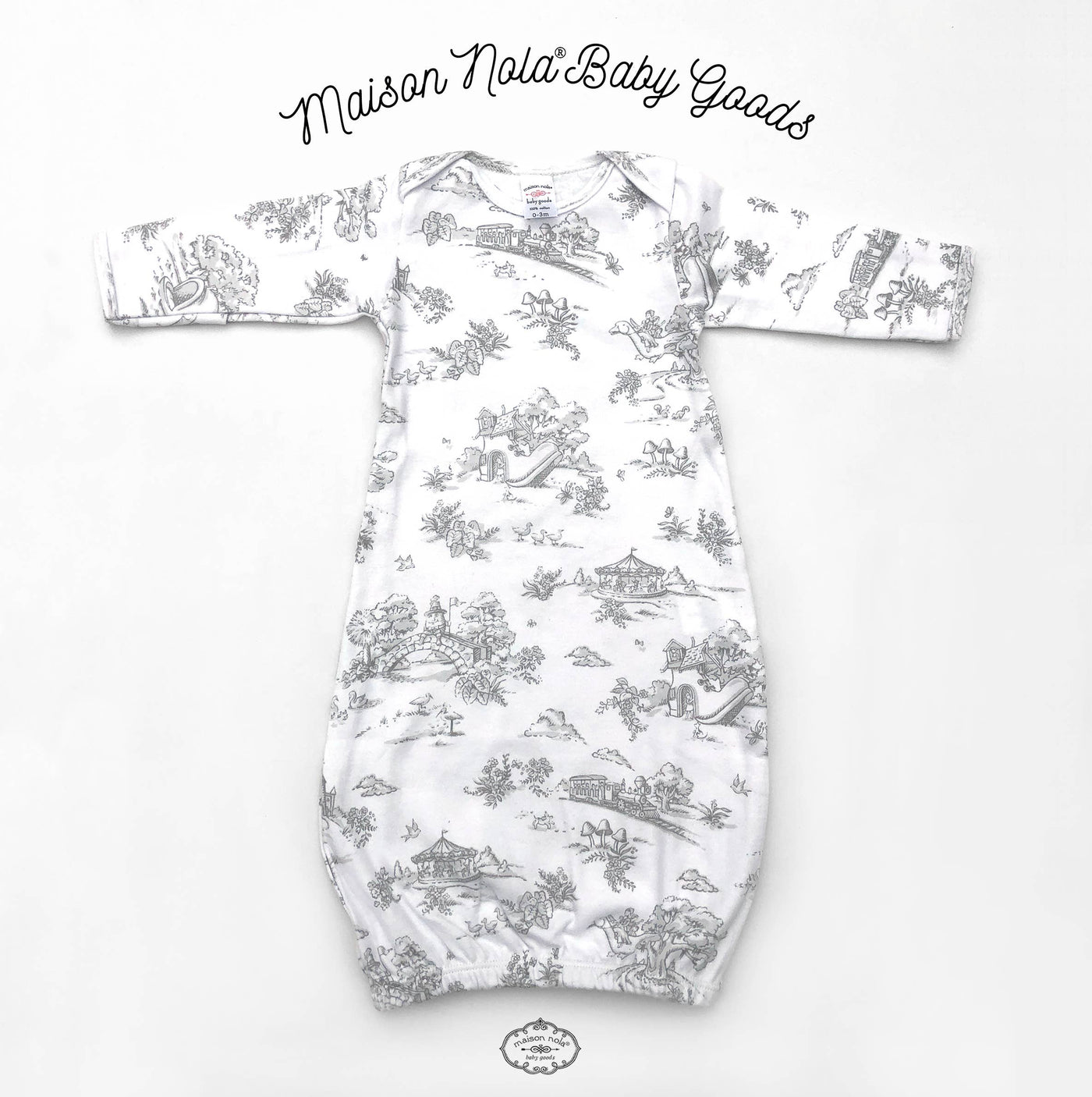 Storyland Toile Bamboo Baby Gown: Grey / 0-3M