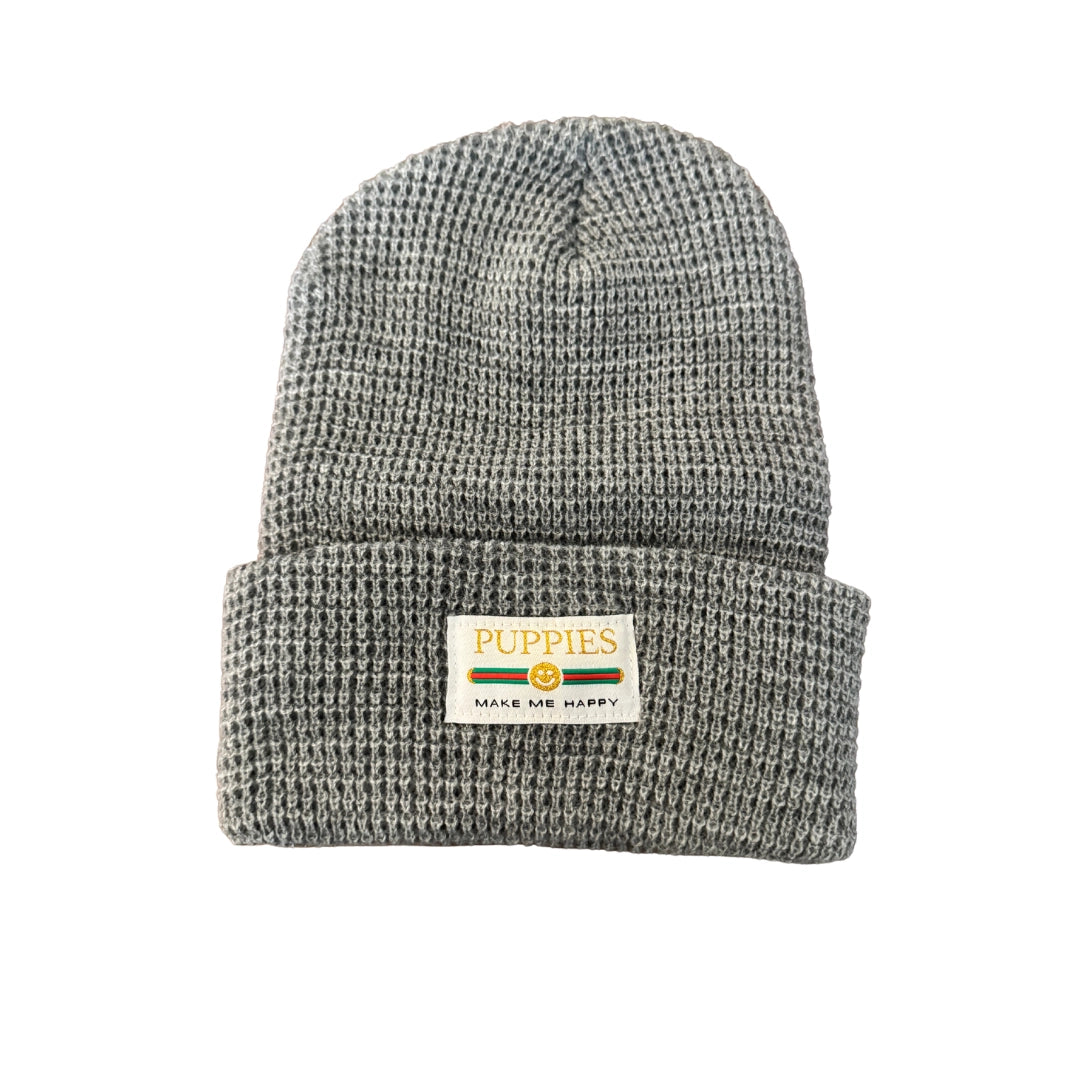 The softest beanie on earth. Our Pup Lux Gold Thread Label on our new 2023 Waffle Beanie