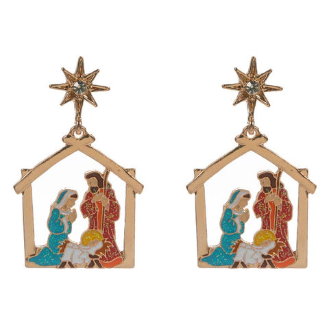 Celebrate the true meaning of the season with these nativity scene earrings, featuring a detailed depiction of a classic holiday moment. A touching accessory for Christmas gatherings and faith-inspired style.
