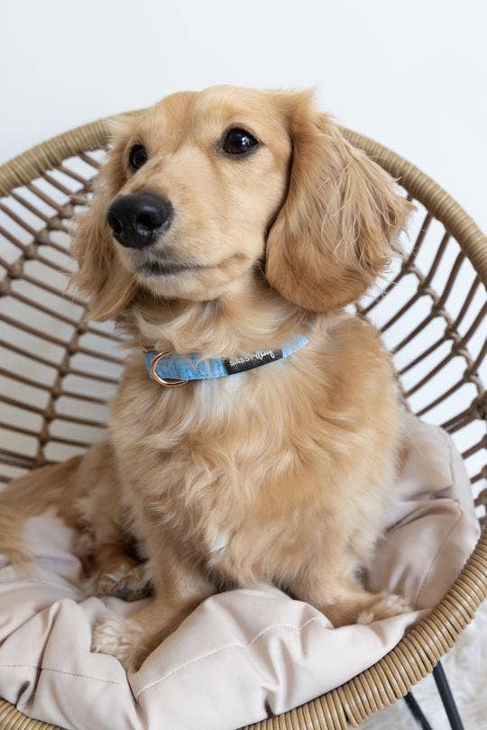 Walk in style with our beautifully crafted 'Blumond' Collar, featuring a Sassy Woof original design. This collar also features classy rose gold hardware.