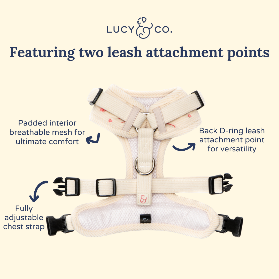 Corduroy is as sweet as can be! The No-Pull Ever So Sweet Corduroy Harness is ideal for coquette cuties and pup’s that need extra stability: featuring front and back leash attachment points along with fully adjustable neck & chest straps (perfect for leash training!). Just like our other gear, these harnesses have been designed with the on the go pup in mind. Our no-pull harnesses include our signature water-resistant neoprene and include extra padding and interior breathable mesh for ultimate flexibility and comfort.