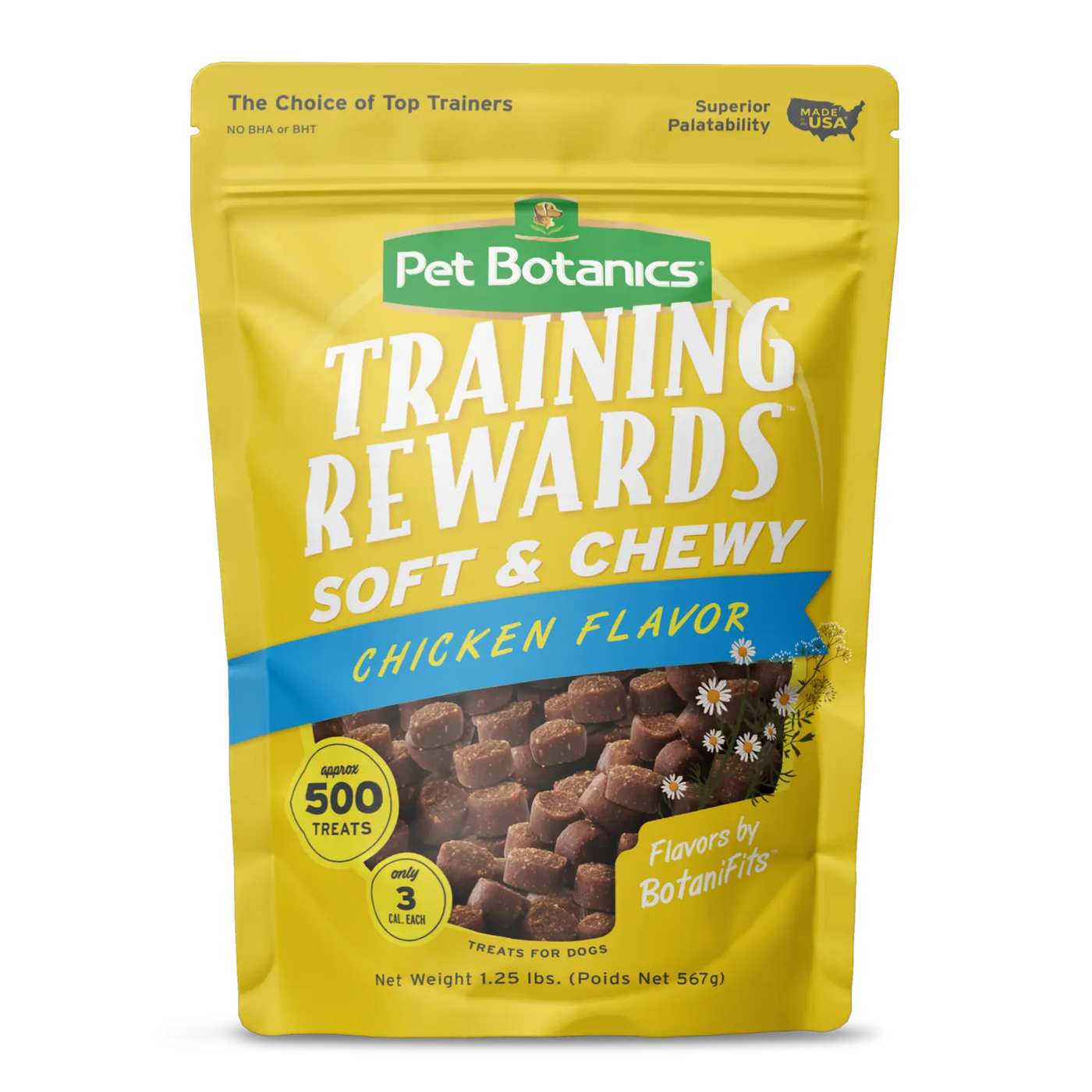 Pet Botanics® Training Rewards™ are the perfect low-calorie training treats. With pork liver as the first ingredient, chicken, and added BotaniFits™, a proprietary botanical blend of ingredients like rosemary and chamomile, Pet Botanics has the aroma and palatability your dog will crave.